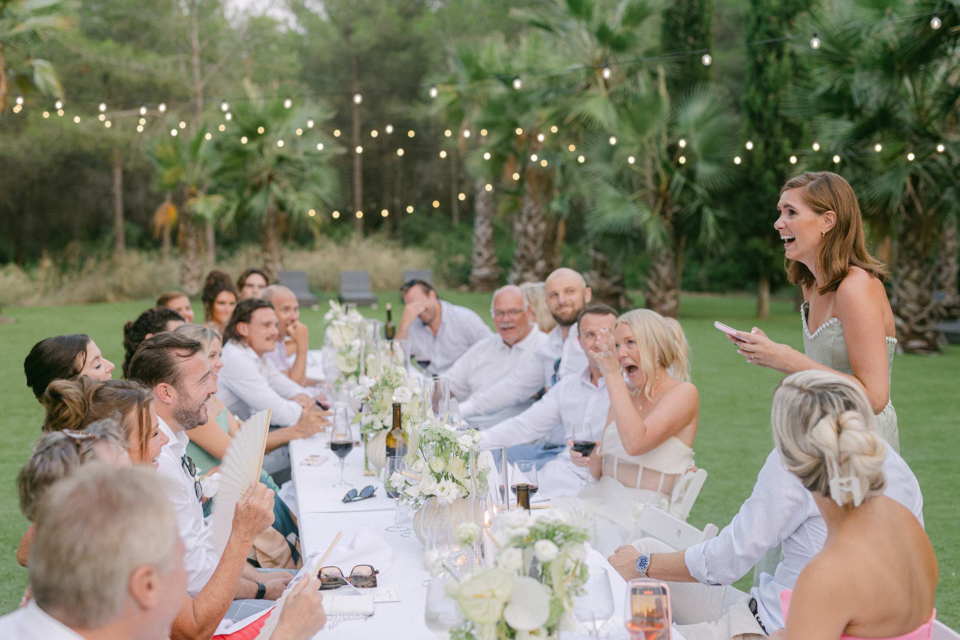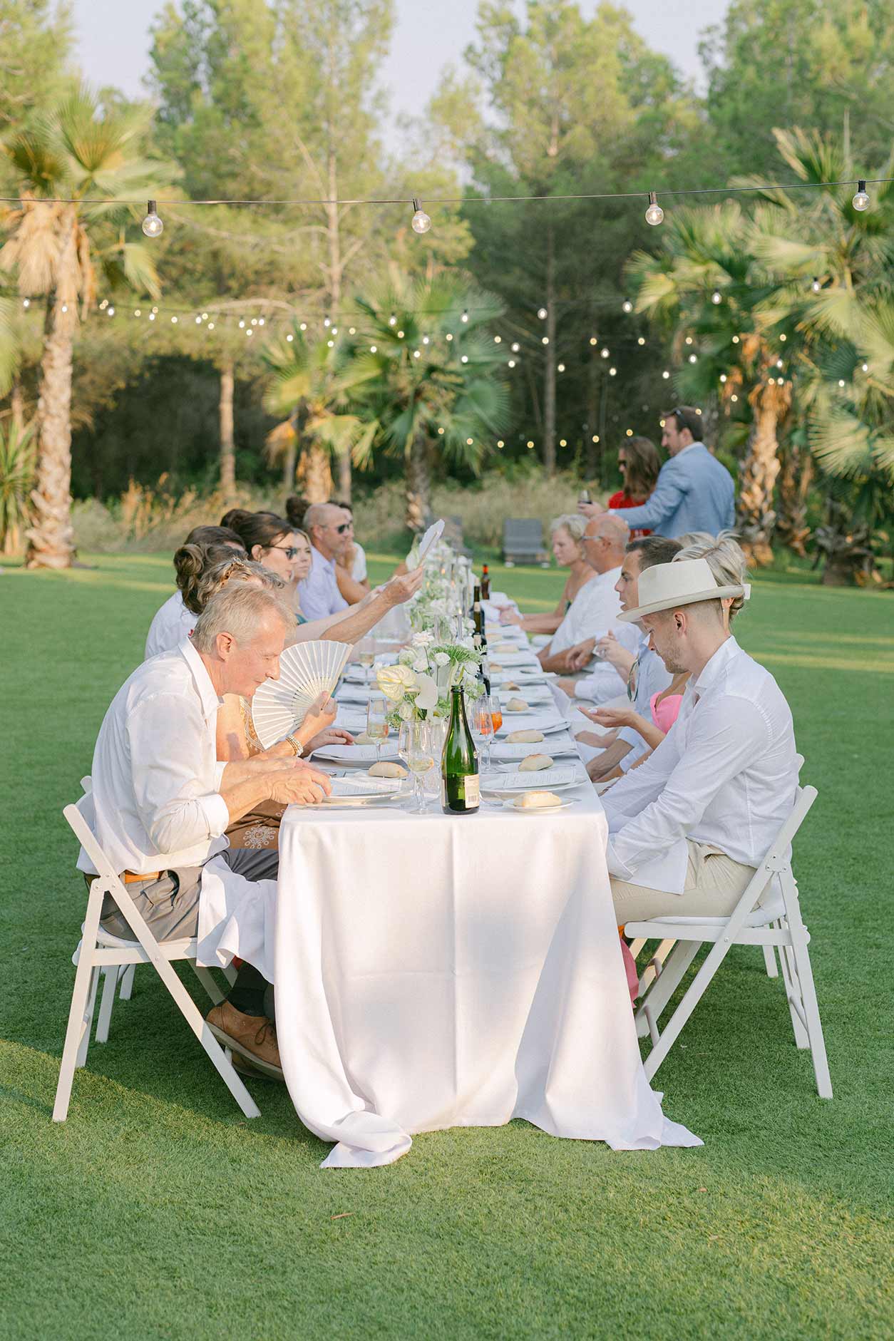 It felt less like a formal reception and more like an elegant dinner party in the Spanish countryside: intimate, refined, and entirely centered around connection. A guest-focused celebration where atmosphere mattered more than spectacle.