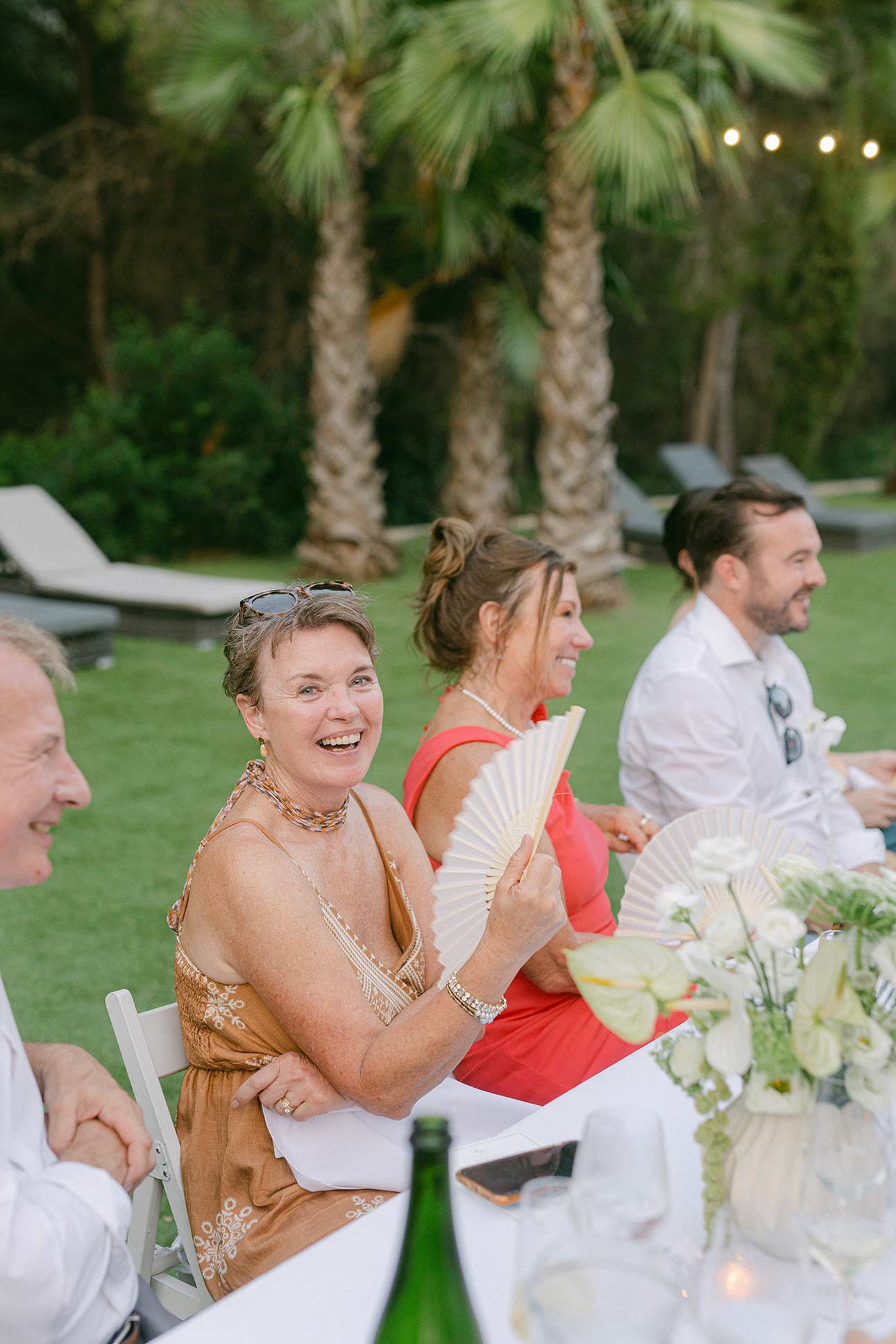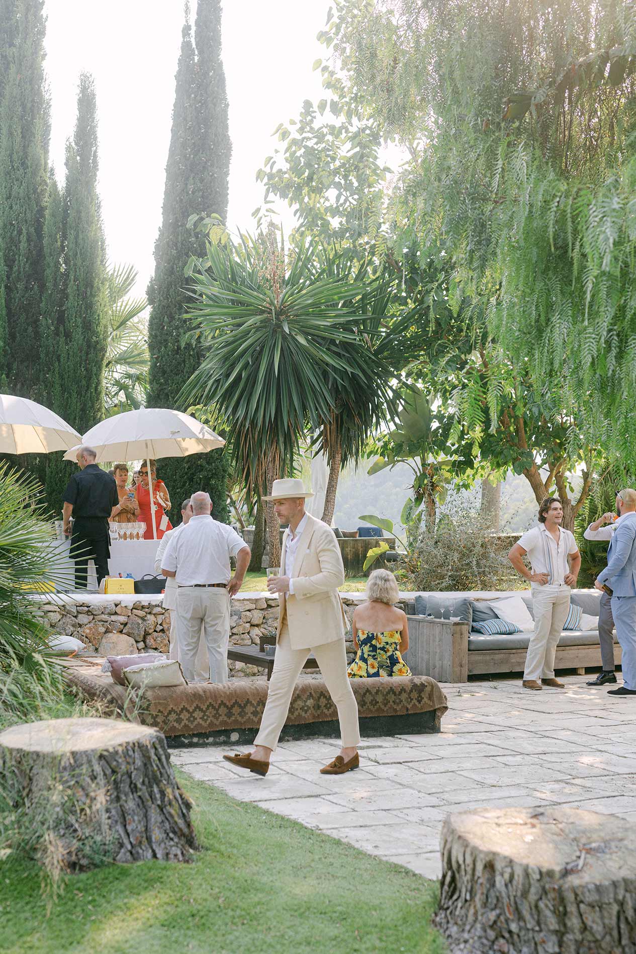 Instead of transitioning into a traditional disco, the evening took an unexpected turn. As the last plates were cleared and the golden light faded, everyone changed into lighter outfits and gathered by the pool. What followed wasn’t a formal dance floor moment, but a spontaneous pool party — laughter, music, cocktails in hand, and guests diving in under the warm Spanish night sky. It was unconventional, relaxed, and completely them. Less choreography, more connection. And without question, one of the most memorable parts of the day.