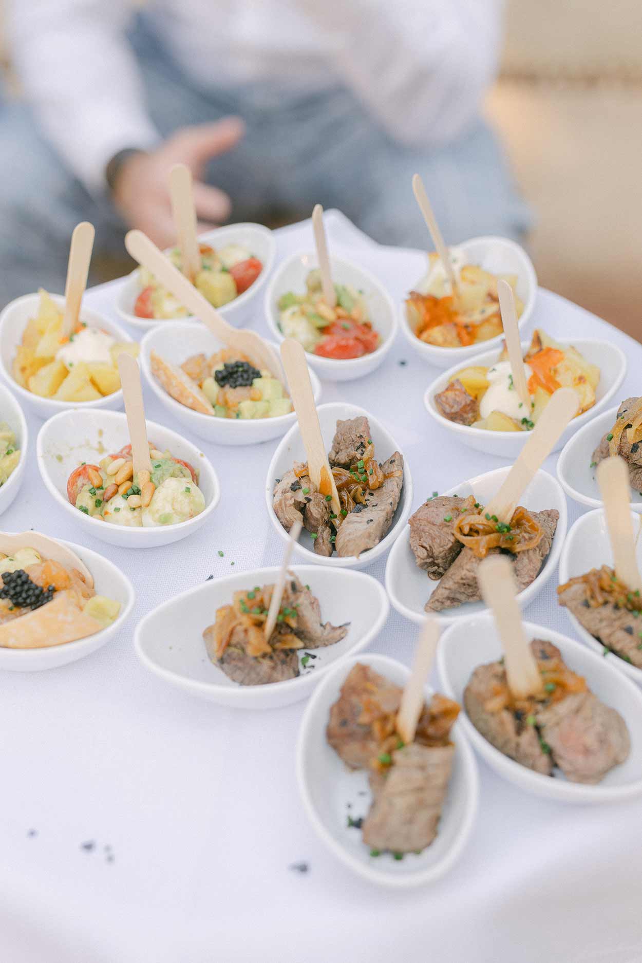Dinner was beautifully prepared by a local catering team specializing in Mediterranean cuisine, elevating the entire Barcelona wedding reception experience with seasonal ingredients and thoughtful presentation.