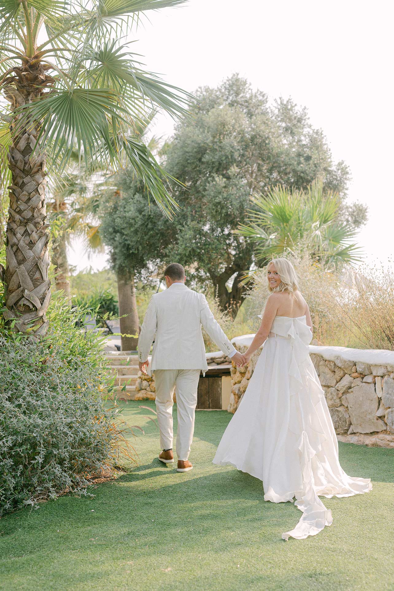 Set against the soft Mediterranean landscape, their wedding in Sitges unfolded with a quiet sense of ease — sunlight filtering through palms, stone walls holding generations of warmth, and every detail chosen with care rather than excess. It was a destination wedding that honored presence over performance, where the atmosphere felt refined yet relaxed, and every moment was given space to breathe.