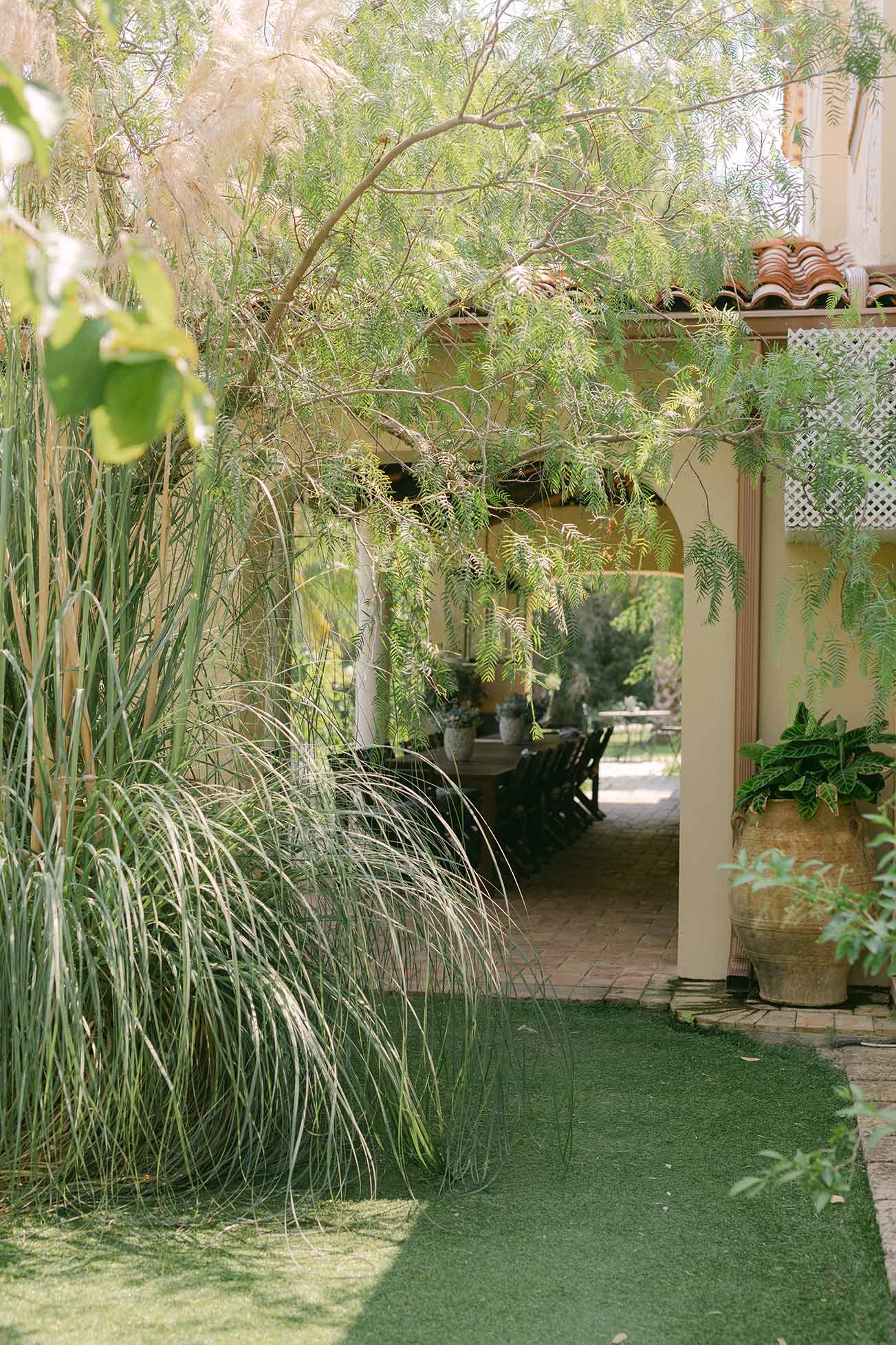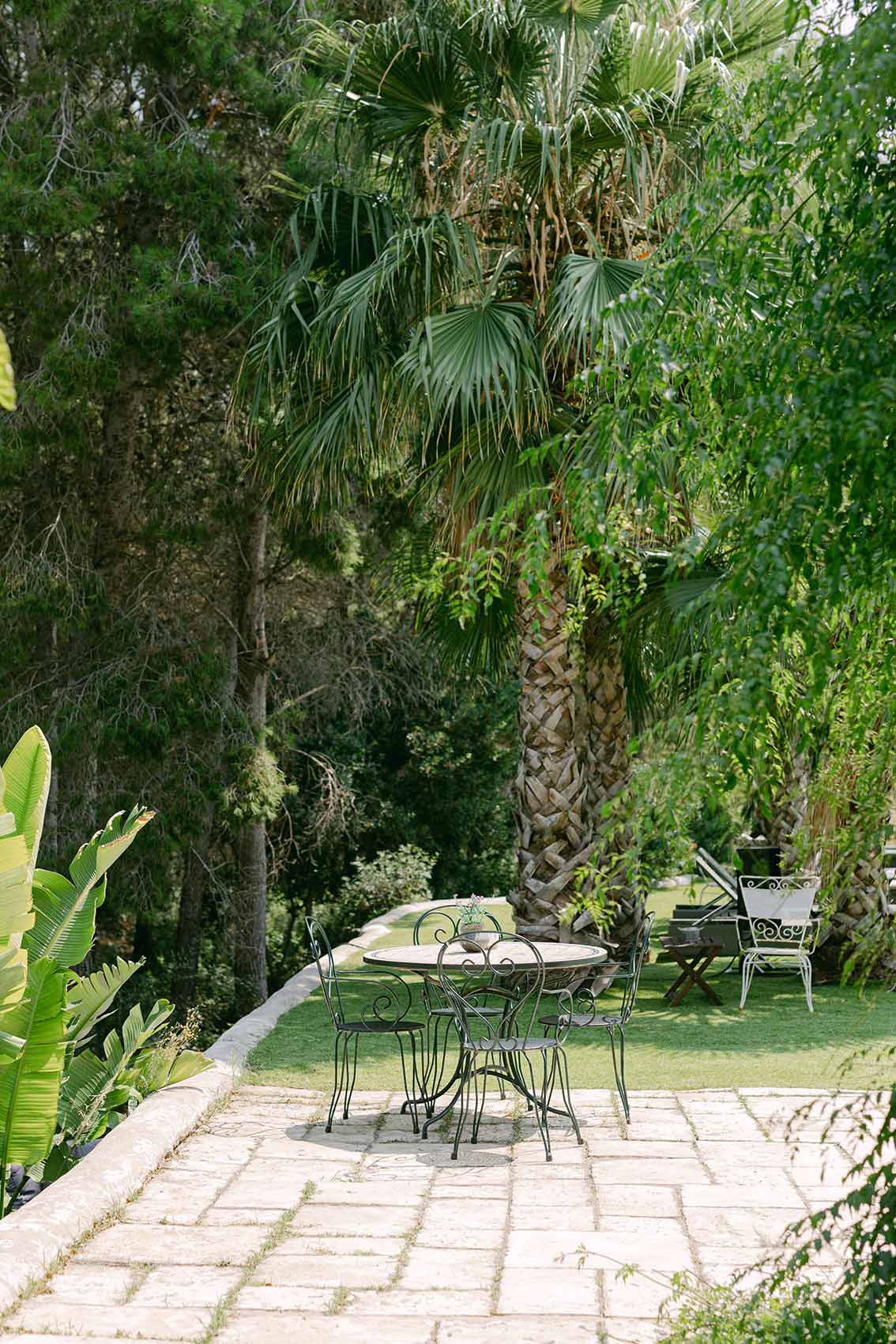 As the sun began to soften over the gardens, dinner was served outdoors beneath swaying palms and delicate strands of warm string lights. The late Mediterranean light settled gently over the lawn, turning the entire villa grounds into something golden and quietly cinematic.
