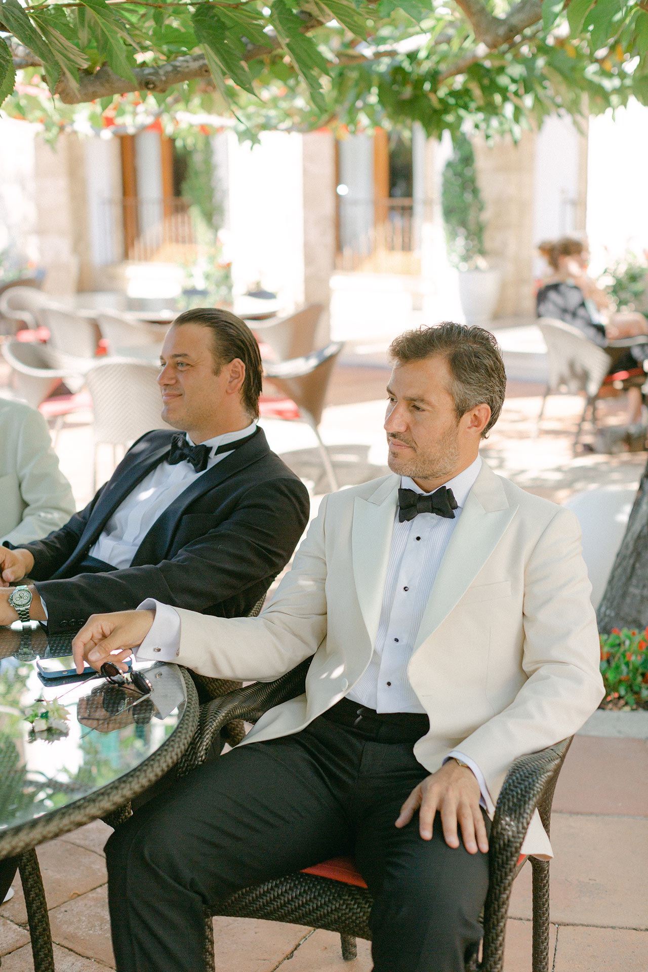 Hermine and Pep exchanged their vows on the terrace of a stunning villa overlooking the azure waters of the Mediterranean Sea. The golden light of the setting sun bathed the scene in a soft, ethereal glow, casting the couple in a magical light. Their guests, seated in elegant chairs amidst lush greenery, felt the warmth of the moment as the gentle Mediterranean breeze danced through the air, carrying whispers of joy and love. With every passing moment, it was clear that this was no ordinary celebration—it was a once-in-a-lifetime experience.
